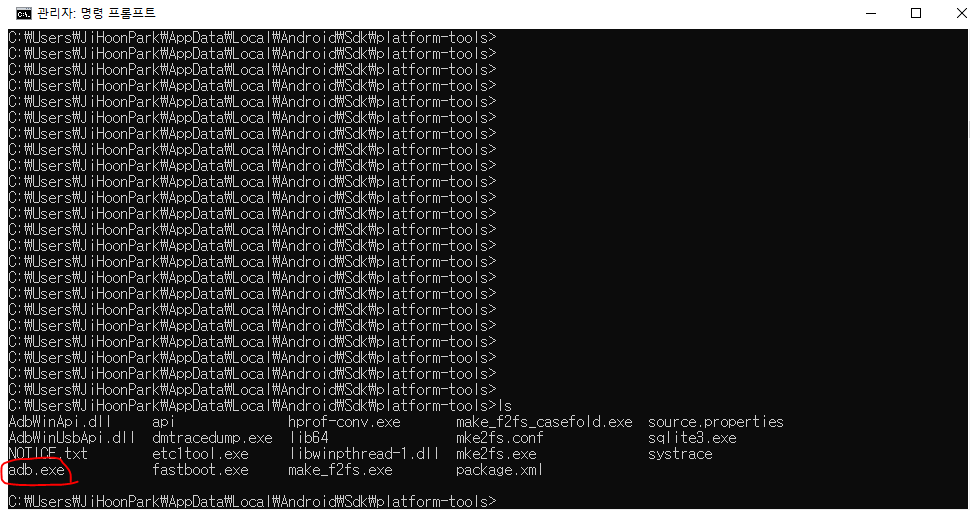 | cd C:\Users\[사용자이름]\AppData\Local\Android\Sdk\platform-tools |