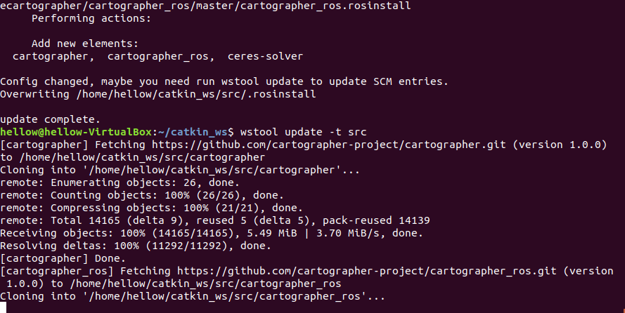 | wstool merge -t src https://raw.githubusercontent.com/googlecartographer/cartographer_ros/master/catrographer_ros.rosinstall |