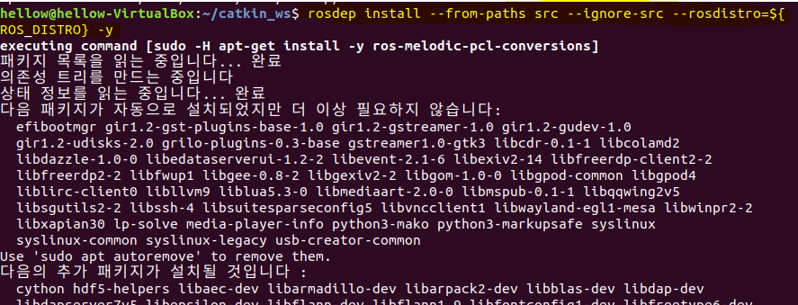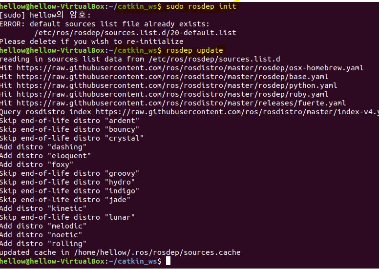 3. 카토그래퍼_로스의 종속성을 설치합니다. 이후 sudo rosdep init 명령 실행 시 오류가 나오는데 오류는 무시해도 됩니다ㅎㅎ..