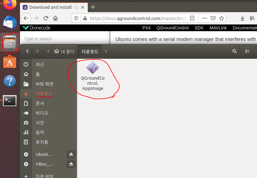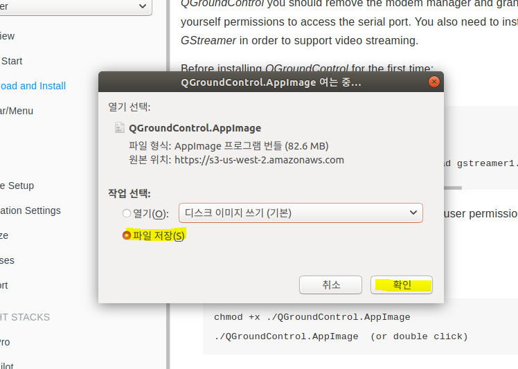 | 다운로드 파일 QGroundControl.AppImage 더블클릭 |
