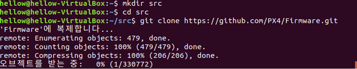 2. PX4 소스코드를 설치 및 빌드합니다.(1번에서 오류가 떳으므로 2번에서 뷜드를 해줍시다.)