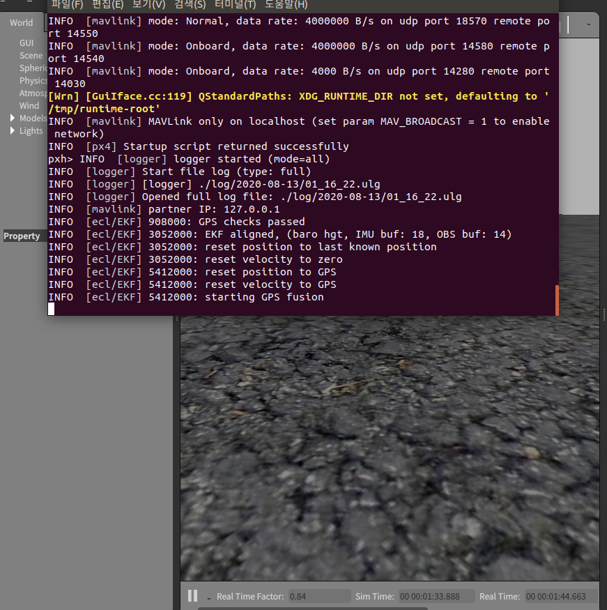 우선 기존에 make px4_stil jmavsim 뷜드에 성공했을 때 저렇게 시뮬레이션 화면이 뜨지 않았었는데 python2가 문제였네요 ㅎ....(jmavsim