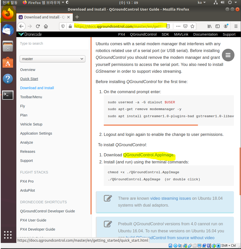 (참고 : https://docs.qgroundcontrol.com/master/en/getting_started/download_and_install.html )